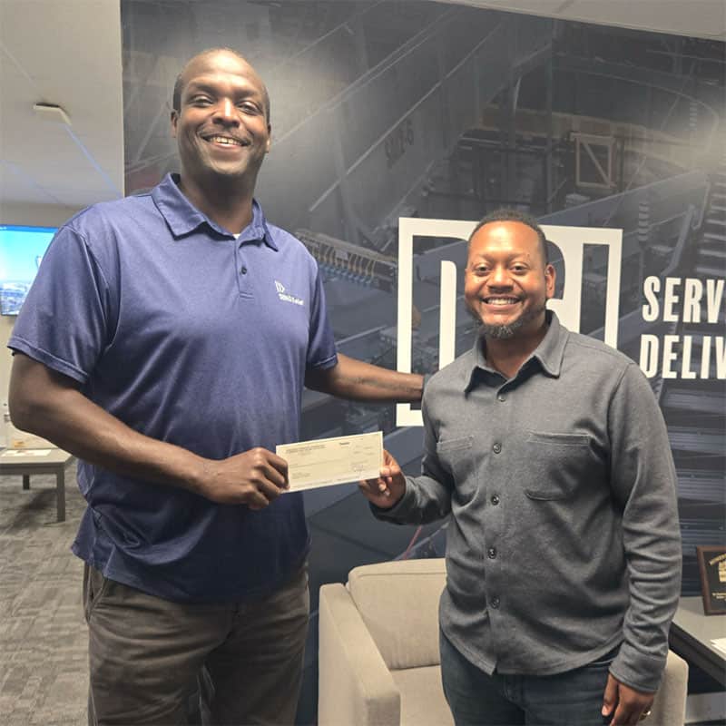 Tony Allen presented a DCI Community Care Grant to Shun Abram with Send Relief Mid-South.