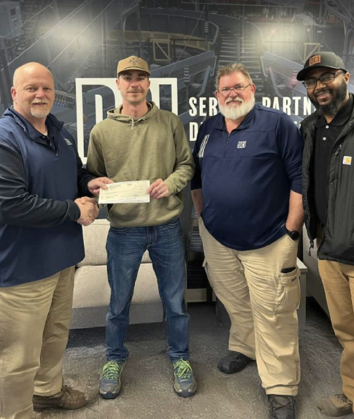 Bryan Robinson, Keith Paluso, and Michael Williamson presented a DCI Community Cares Grant to Sam Gregory with Wounded Warriors (Movement of Freedom Hunt). We consider it a privilege to partner with such a vital organization helping those that have served us.